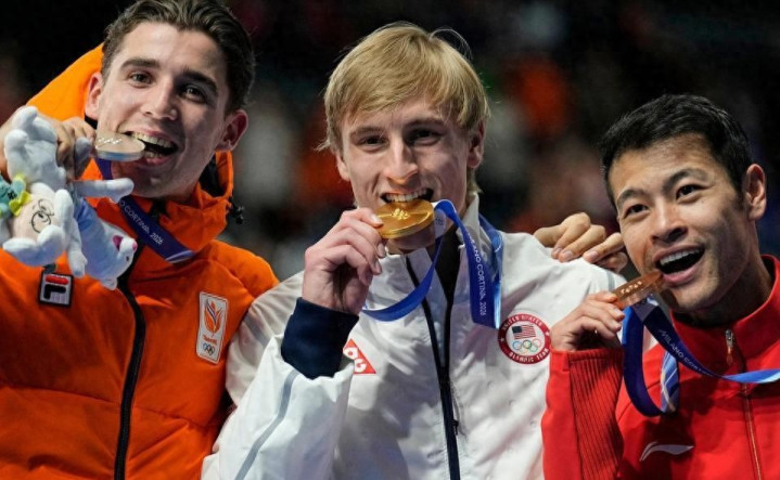 北京时间2月12日凌晨,2026年米兰-科尔蒂纳冬奥会继续进行,中国冬奥代表团斩获1枚铜牌。在速滑男子1000米决赛中,老将宁忠岩以1分07秒34的成绩夺得铜牌。最新的金牌榜上,中国队以1银2铜依旧排在第14位,挪威以7金继续高居第1,美国则以4金上升到第2。